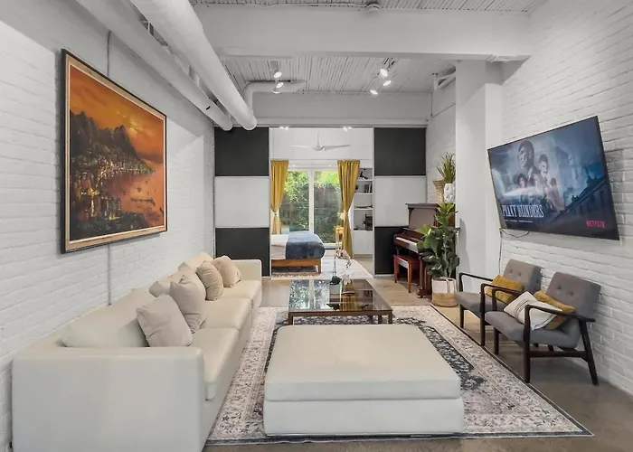 What popular landmarks can we find near Sunlit 2-Bedroom Loft With Rooftop Deck & Parking apartment?